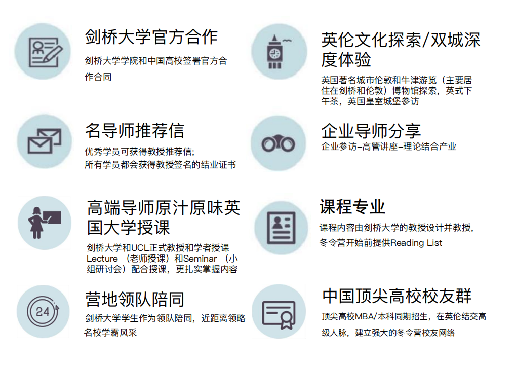 1、获得由教授签名的剑桥大学官方结业证书(带剑桥学院Logo)。优秀学员可以获得教授的亲自学术规划指导和推荐信。实质性提高未来阶段升学前景和名校率。
